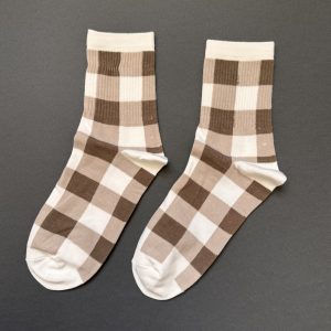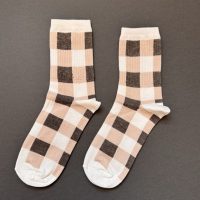 جوراب ساقدار چهارخانه کرم،سفید، قهوه ای کد ۲۶۶